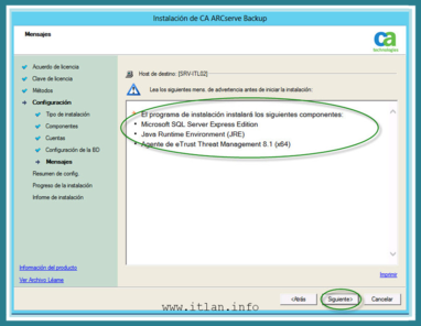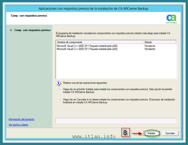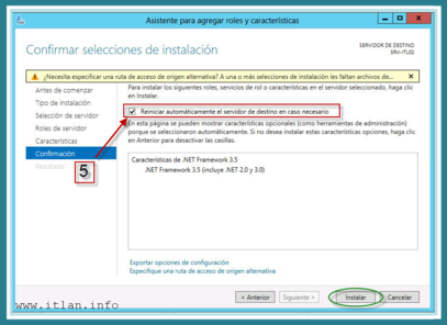 Antes de proceder a la instalación de ARCServe, es necesario instalar Framework 3.5, desde Server Manager, opción "Agregar Roles y características", Pasos 1 - 6d, en el caso de que ya tengais instalado este componente en vuestro servidor, los pasos que os indico tendréis que omitirlos.