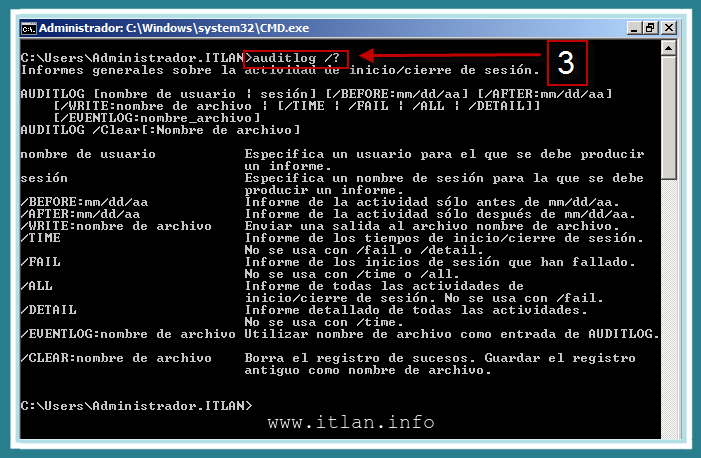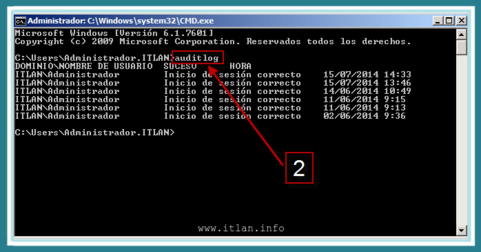 Para ejecutar "auditlog", el usuario debe de tener derechos de Administrador en Windows.