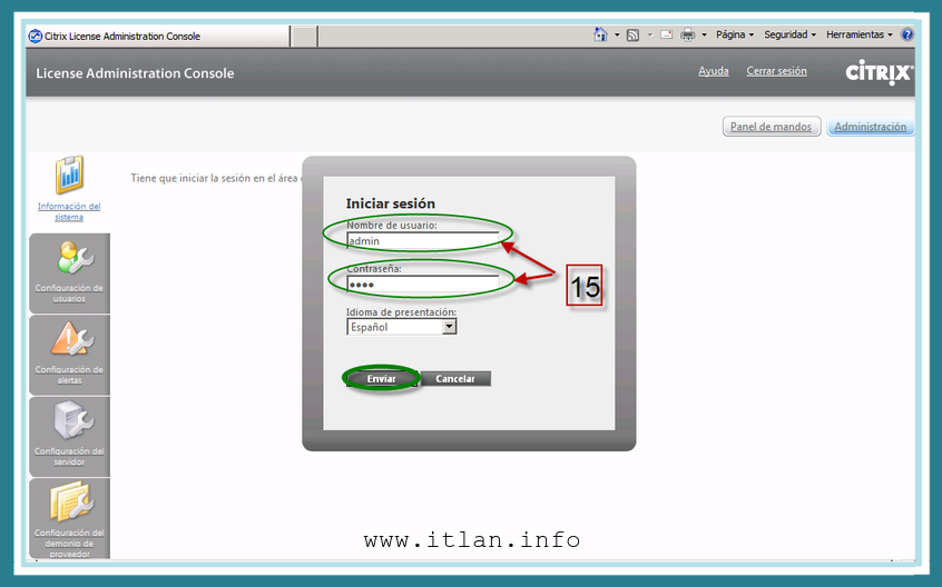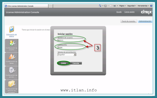 Iniciamos sesión en la Consola de Licencias de XenApp, utilizando el nombre de usuario