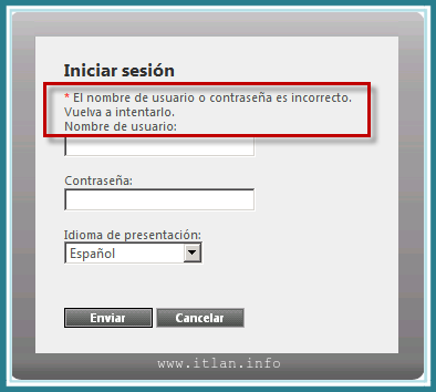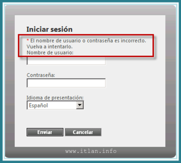 Paso 3: Nos informa que el "Usuario" o "Password" introducida anteriormente no es correcta.