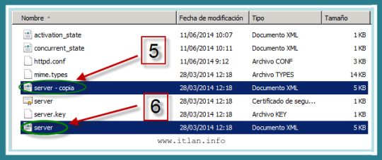 Paso 5: Buscamos el fichero "server.xml" y hacemos una copia de seguridad, por si al realizar los cambios ocurre algo inesperado. Abrimos el fichero con el bloc de notas.