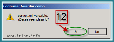 Paso 10: Nos informa que el fichero existe, pulsamos "SI".