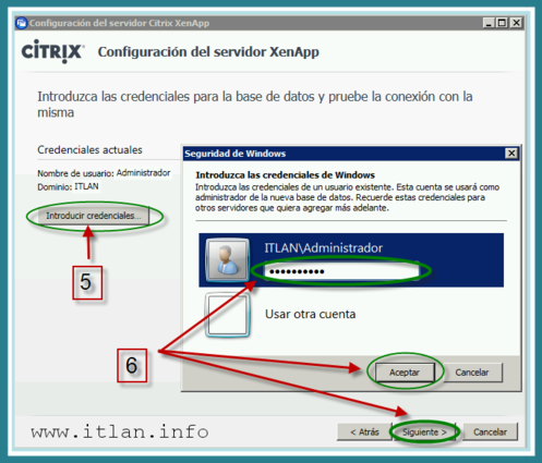 La siguiente opción es acerca de la Creación o Selección de la BB.DD. Como explique en el articulo anterior, XenApp necesita tener una Base de Datos en la que almacenar toda la información. Para un entorno pequeño-mediano, que es nuestro caso utilizaremos Microsoft SQL Server 2008, que es el que proporciona la propia instalación de XenApp.