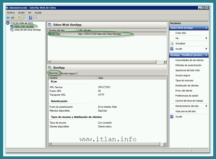 Como observareis en el Paso 15 hay dos tipos de Sitios en la Iterfaz Web de Citrix XenApp 6.5.