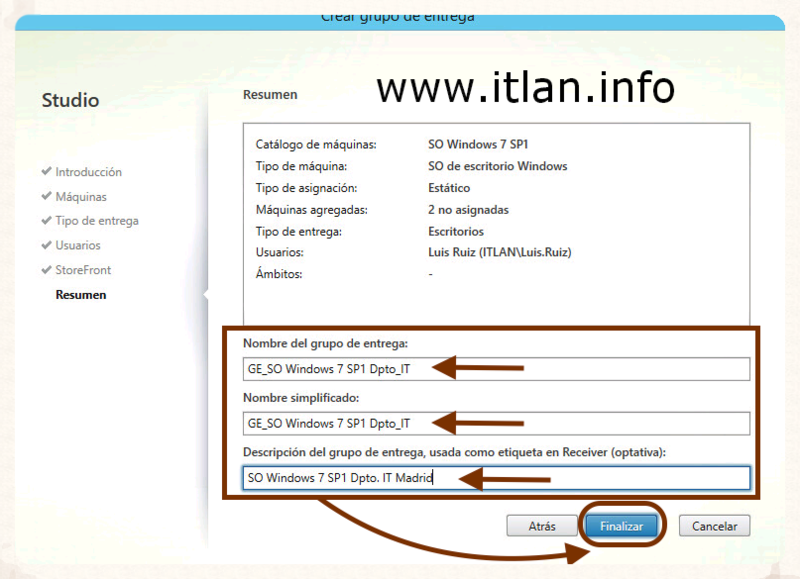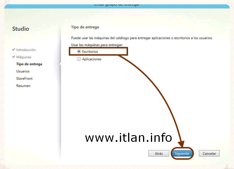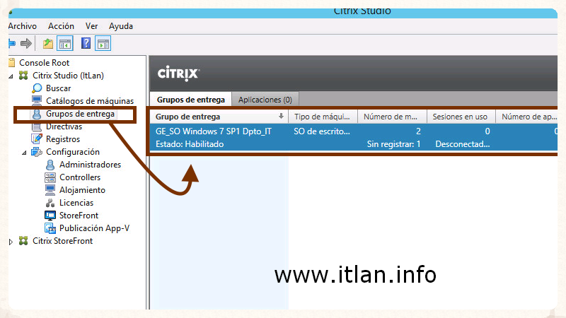 Un grupo de entrega es un conjunto de máquinas seleccionadas desde uno o varios catálogos de máquinas. El grupo de entrega especifica los usuarios que pueden usar esas máquinas y las aplicaciones disponibles para esos usuarios.