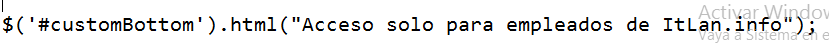 Para personalizar el pie de página únicamente tendréis que introducir los códigos de los Paso 11 y 12, guardar los cambios, Iniciar Sesión y os aparecerá el texto de pie de página como en el Paso 10.