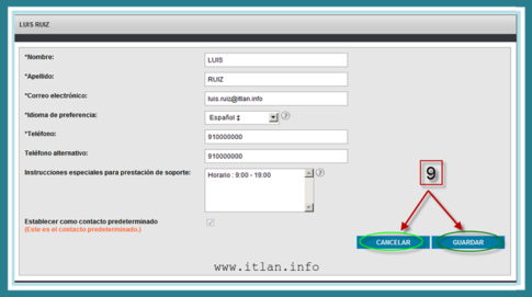 Si tuvieseis más de un contacto dentro de la compañía, podéis agregar los que os fuesen necesarios haciendo “clic” en el botón “AGREGAR NUEVO CONTACTO”, y por el mismo procedimiento eliminarlos pulsando el botón “ELIMINAR” dentro de su ficha, el primer contacto no se puede eliminar.