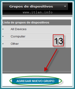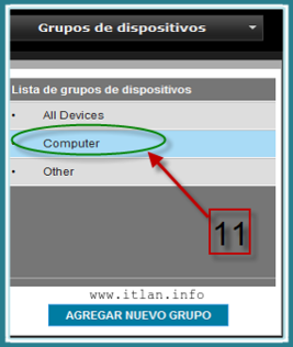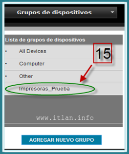 También podéis crear vuestros propios grupos de dispositivos haciendo clic en “AGREGAR NUEVO GRUPO”, dependiendo de las necesidades de vuestro Departamento o Sociedad.