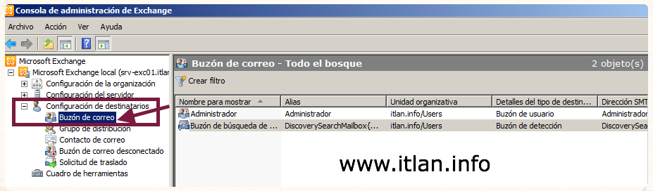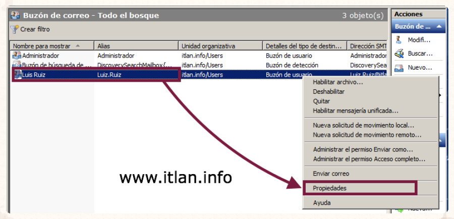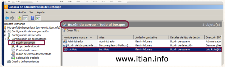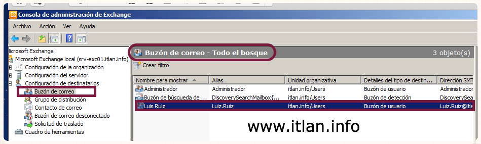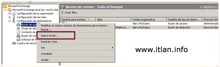 En el siguiente artículo explicare cómo usar la Consola de administración de Exchange (EMC) y el Shell de administración de Exchange para crear un buzón de correo nuevo para un usuario existente. Después de habilitar a un usuario existente para buzón de correo en un servidor de buzones determinado, el usuario podrá enviar y recibir mensajes de correo electrónico.