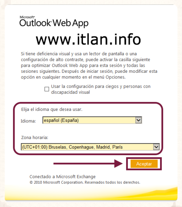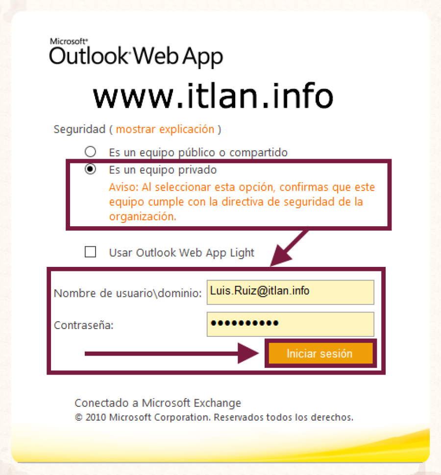 La ruta por defecto es: https://<Nombre_de_Servidor>/OWA