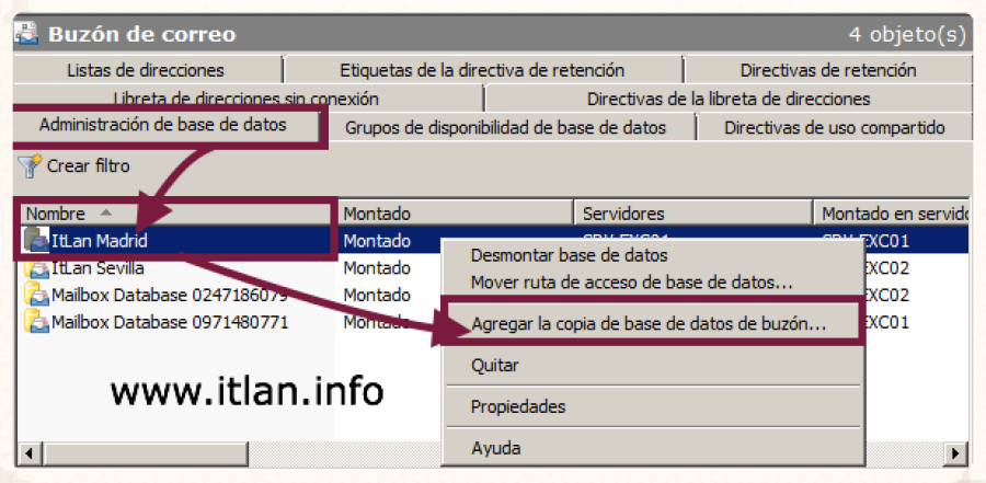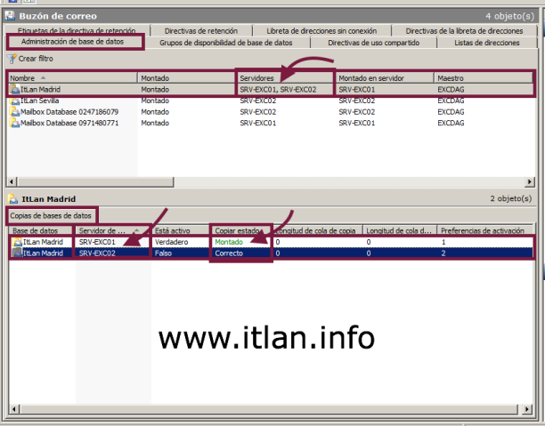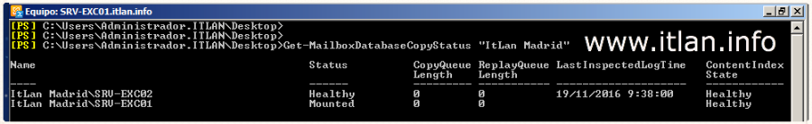 [PS] C:\Users\Administrador.ITLAN\Desktop>Get-MailboxDatabaseCopyStatus "ItLan Madrid" |fl