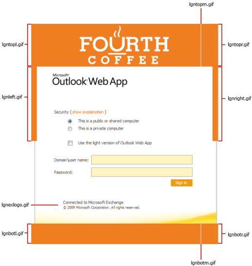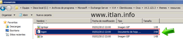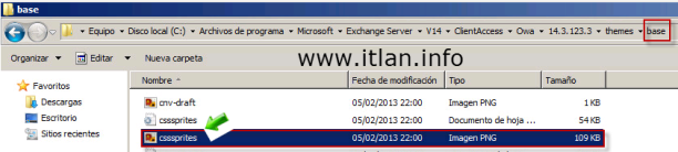 Para modificar el logotipo de "Outlook Web App" tenemos que modifcar el fichero original "cssprites.png" ubicado en: