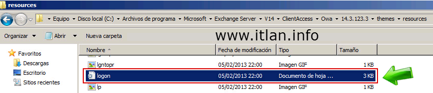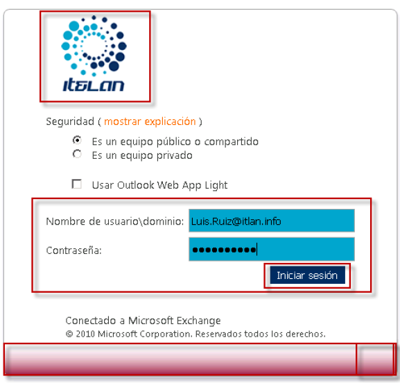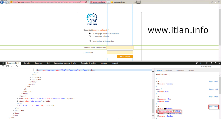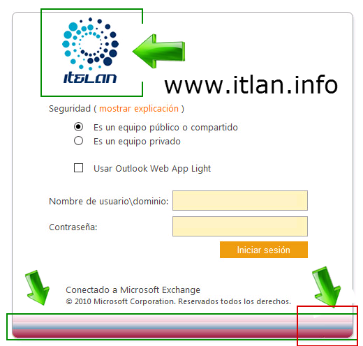 En el Paso 1, podéis observar el formulario de Inicio de OWA Original, formulario que vamos modificar para darle un aspecto más corporativo (logotipo, colores, etc..), para ello realizaremos los siguientes pasos: