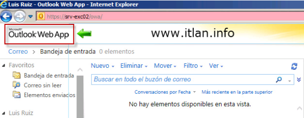 Para acceder a OWA internamente desde nuestra organización escribiremos https:// <nombre de servidor>/owa