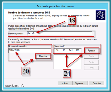 Si conoces el nombre del servidor en lugar de su dirección IP, introducelo en el campo Nombre del Servidor y después has clic sobre Resolver. A continuación te mostrara la direccion IP de dicho servidor (si es que existe) en el campo Dirección IP, después añades dicho servidor haciendo clic sobre el botón Agregar.