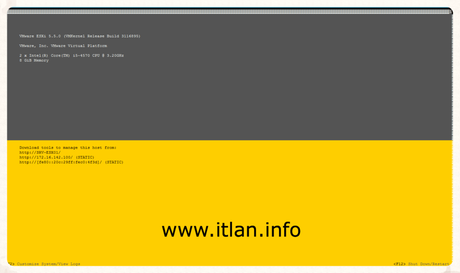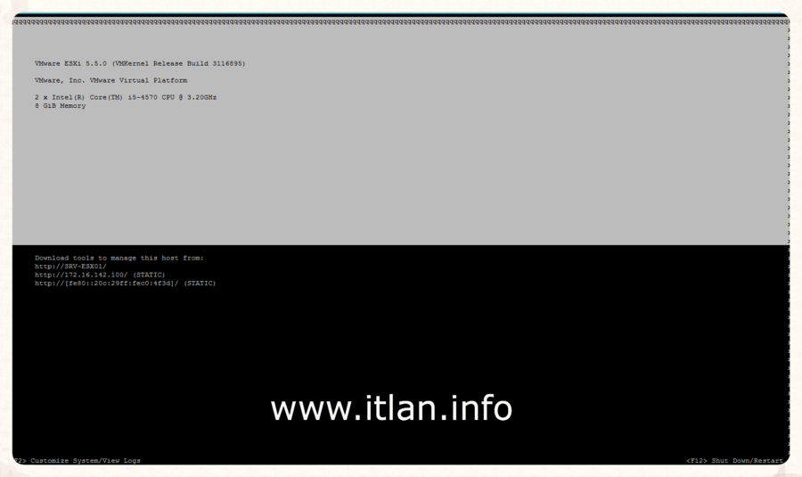 La conexión DCUI funciona exactamente igual que si estuviesemos conectados directamente a nuestra consola ESXi, con la excepción de que en lugar de mostrarnos la pantalla que todos conocemos en color Amarillo, como estámos familiarizados, nos la muestra en Blanco y Negro, pero con el pequeño truco que os muestro a continuación la convertiremos en Amarillo nuevamente.