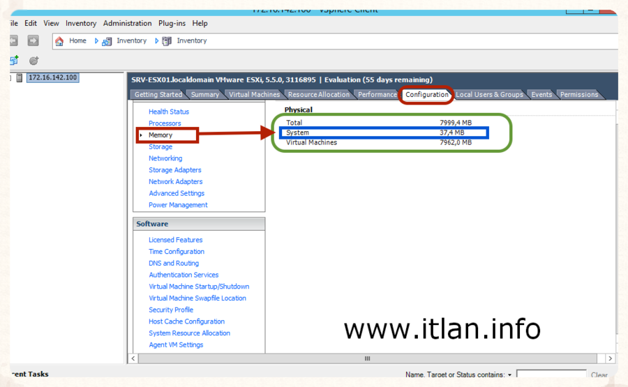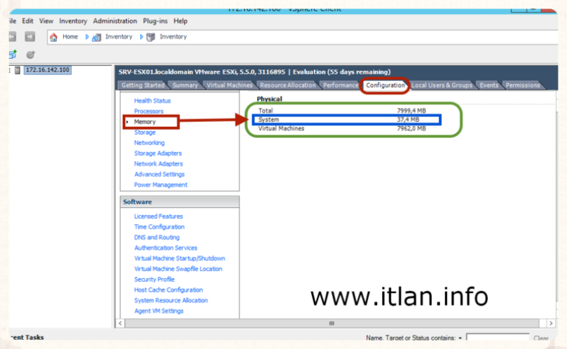 En el apartado "Memory", podeis ver de cuanta memoria dispone nuestro ESXi.