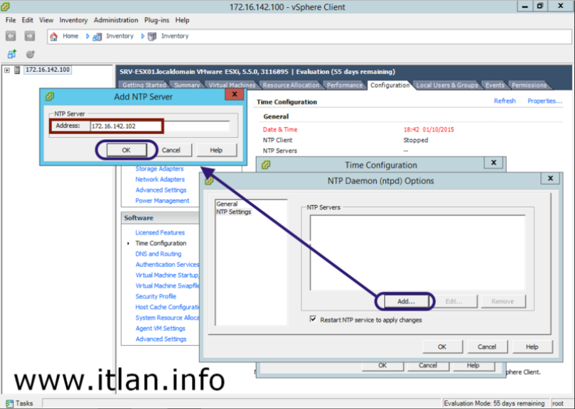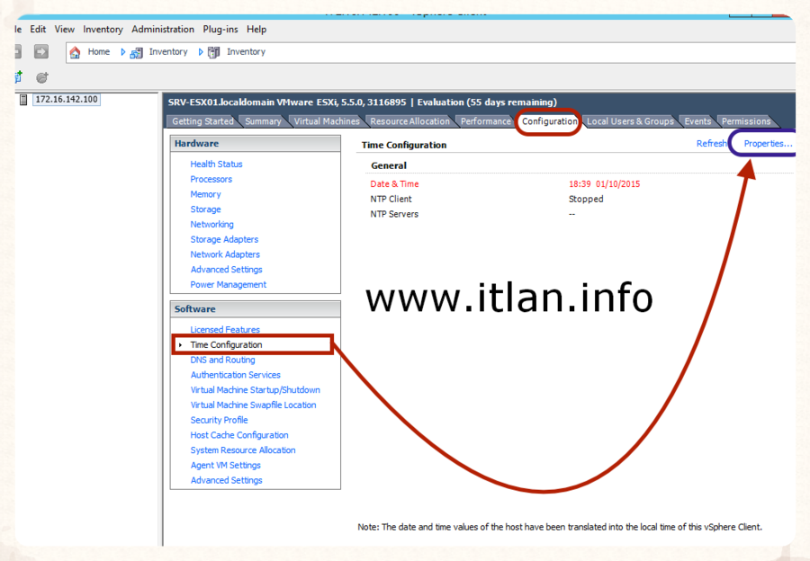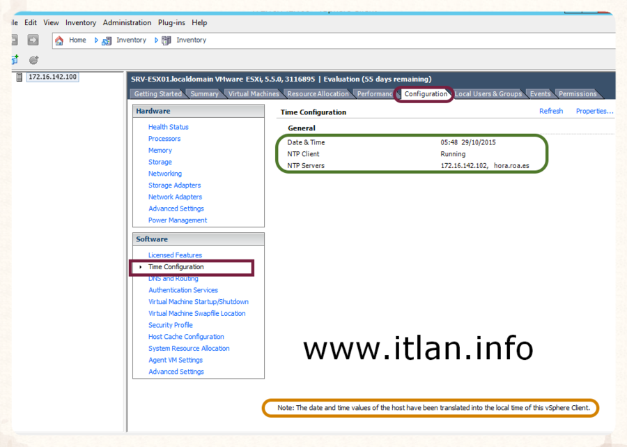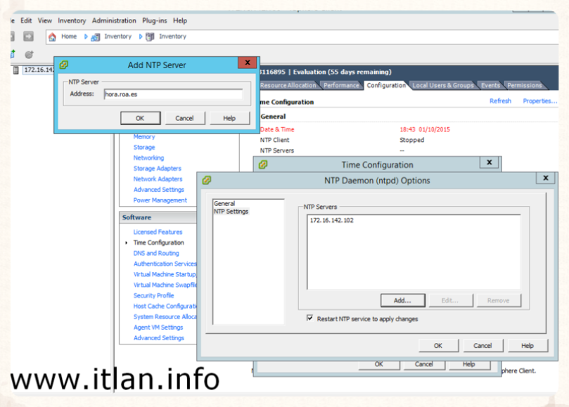 La hora exacta es esencial para los servidores ESXi, ya que muchas funcionalidades de vSphere requieren que los Host estén sincronizados al segundo (syslog, autenticación iSCSI y de seguridad, etc..).