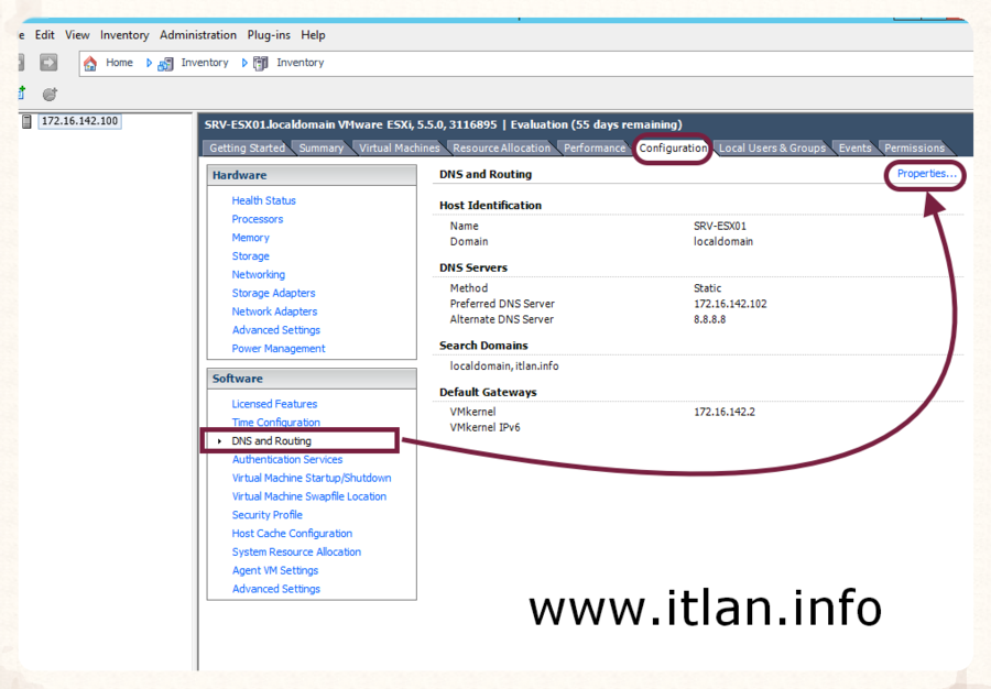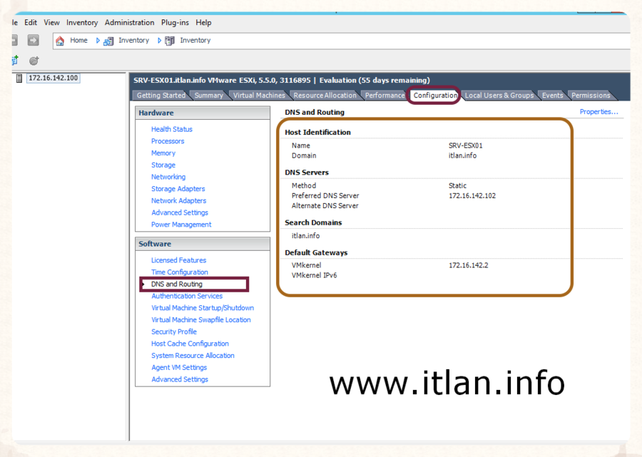 Continuamos con el siguiente artículo sobre la configuración de vSphere ESXi 5.5. Una vez accedido a nuestro ESXi mediante vSphere Client, seleccionaremos nuestros Host, en nuestro caso nuestra IP 172.16.142.100 (más adelante cambiaremos la IP por su nombre DNS) y buscamos la pestaña "Configuration", vereis muchas pestañas "no os asusteis..", iremos viendo muchas de ellas a lo largo de los siguientes artículos.