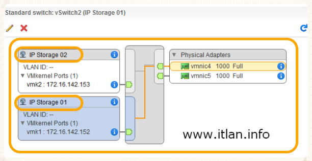 Resumiendo, la idea es configurar Multipathing con iniciadores de software iSCSI, para ello deberemos configurar dos Port Group como mínimo tipo VMKernel y después mapear cada Port Group a un uplink diferente sobre el mismo vSwicth, seleccionando el algoritmo de Multipating Round Robin.