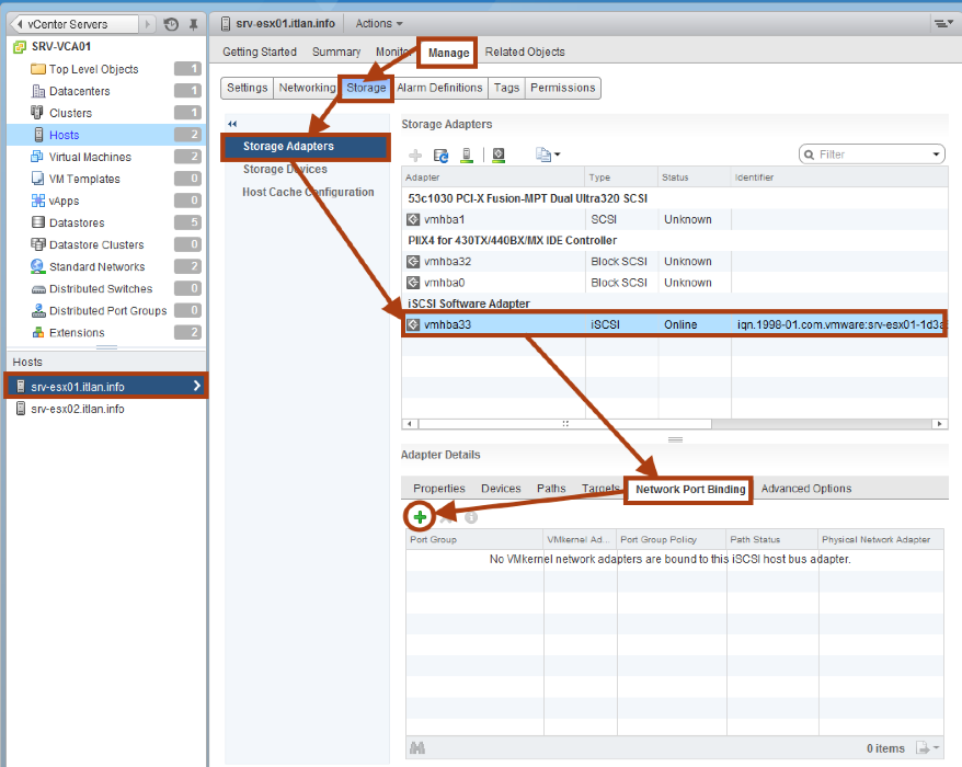 Configurar Networking (Red) iSCSI Port Binding en vCenter 5.5