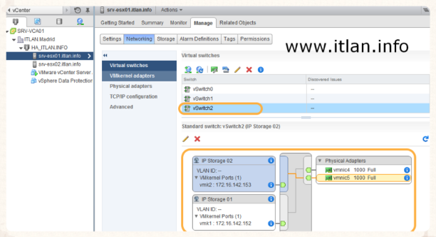 Resultado Final 03: Virtual Swicth2 - IP Storage 01 y 02 (Red iSCSI de Almacenamiento).