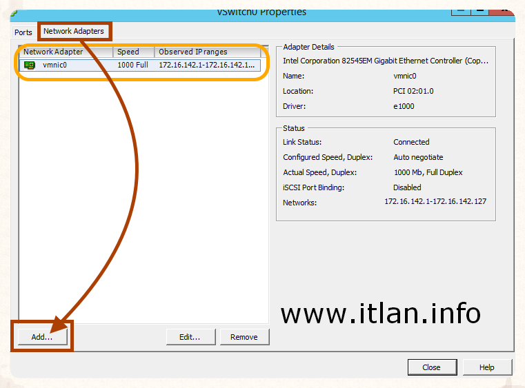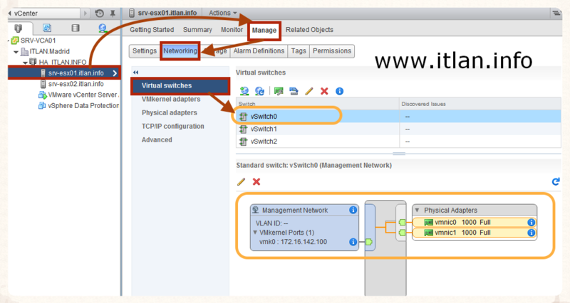 Network (Red de Gestión), como podeis observar en el Paso 2, solo tenenos asociada la vmnic0 a nuestro Port Groups, vamos a redundar
