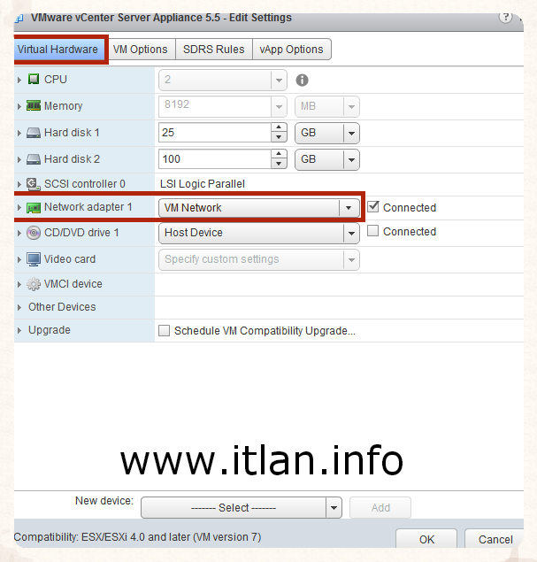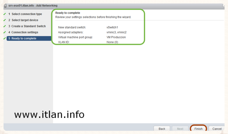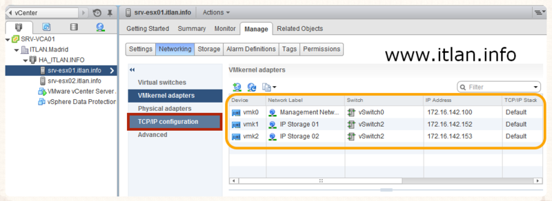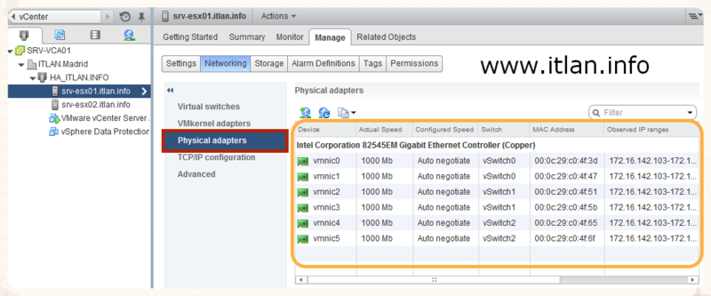 SRV-ESX02.itlan.info. Las configuraciones que utilizadas en nuestro laboratrorio son las siguientes: