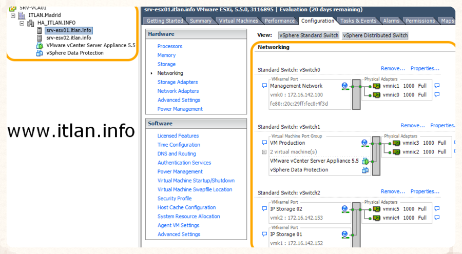 La primera configuración la realizaremos desde nuestro vSphere Client, las siguientes con vSphere Web Client, simplemente por manejarnos con ambas herramientas.