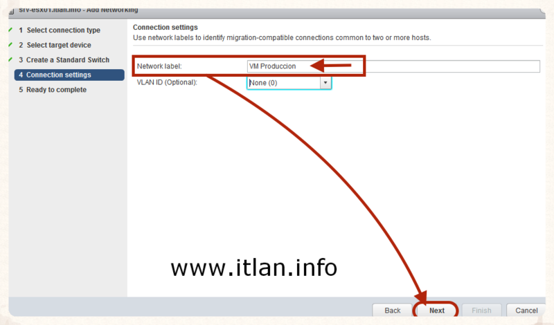 Network, en los siguientes Pasos, le diremos que queremos gestionar el tráfico por nuestro nuevo vSwicth1, y sin ningún tipo de interrupción en el servicio.
