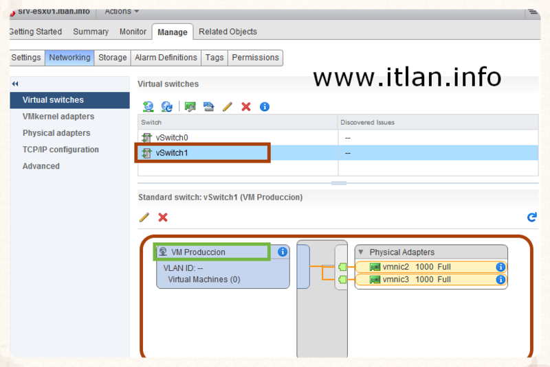 en otros servidores VMware vSphere ESXi 5.5, mediante la configuración de los virtual switches.