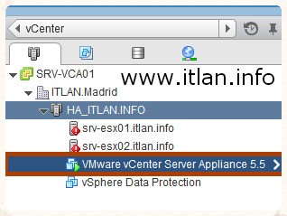 Nos situamos" vCenter" -> "Cluster" -> "SRV-ESX01.itlan.info".