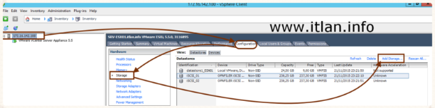 Ahora ya podémos configurar nuestro acceso destino iSCSI en nuestros host vSphere ESXi 5.5, este paso lo podemos realizar desde vSphere Client o vSphere web client, nosotros lo realizaremos desde el primero.