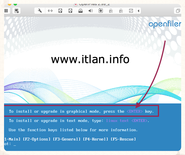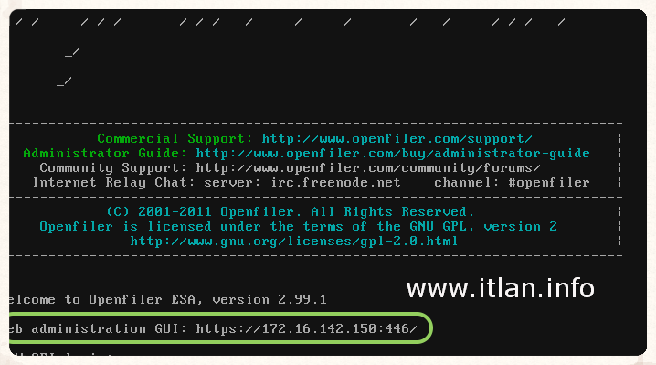 Openfiler 2.99 se puede instalar en un entorno virtual o fisíco, comenzamos...