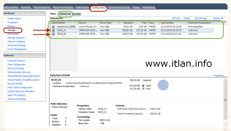 Paso 49: Repetimos los Pasos 41-47 para instalar y configurar nuestro segundo Datastore en nuestra LUN (1), el resultado debe ser el que os muestro en la imagen Paso 49.