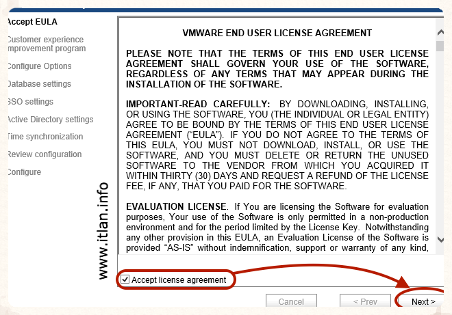 Paso 23: Aceptamos la licencia de usuario (EULA) y pulsamos el botón "Next" para continuar.