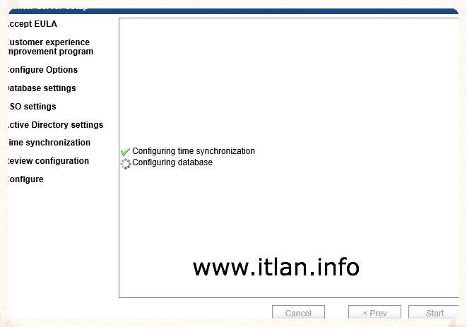 Paso 27: Configurando parametros seleccionados anteriormente (Servidor de tiempo, BBDD, etc..).
