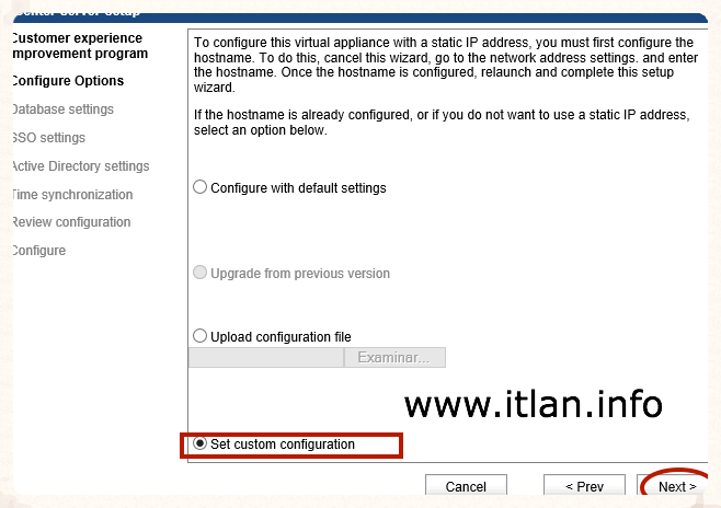 Paso 33: Seleccionamos la opción "Set custom configuration" y pulsamos el botón "Next" para continuar.