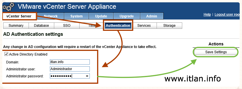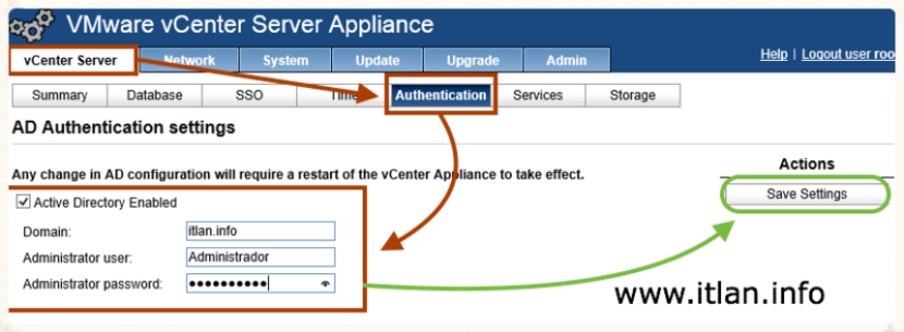 Paso 36: A continuación configuraremos la autenticación de Active Directory con nuestro VCSA 5.5.