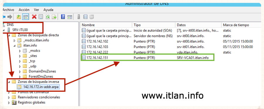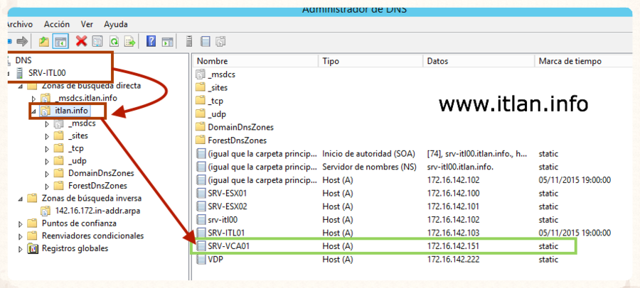 caso SRV-VCA01.itlan.info) en nuestro DNS se encuentra dado de alta y es correcto.