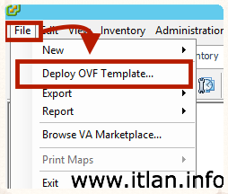 Paso 3: Accedemos a nuestro Host SRV-ESX01, en el menú superior, pulsamos en "File" -> "Deploy OVF Template…"