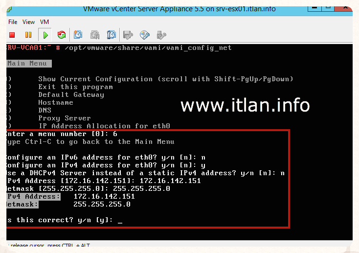 En el caso de no tener instalado DHCP en vuestro sistema, debereis de configurar manualmente la dirección IP de vuestro VCSA