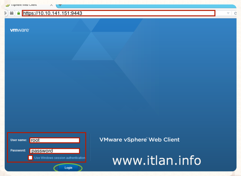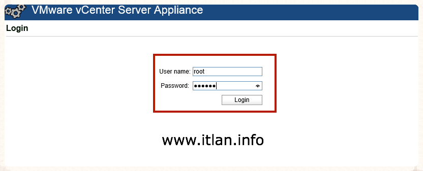 El acceso manual requiere validarse en el VCSA 5.5, con usuario y password por defecto: