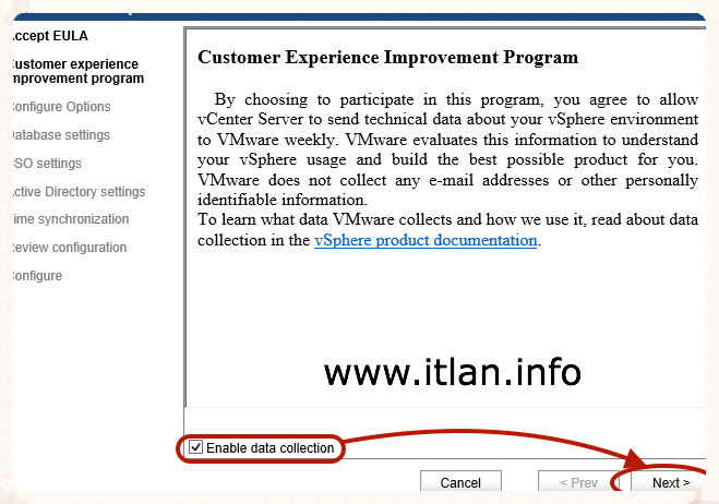 Paso 24: ¡ Optativa ! Aceptamos la recolección de información para mandarsela a vMware y estudiar posibles problemas que los estudien y aplicar soluciones en futuras versiones y actualizaciones.