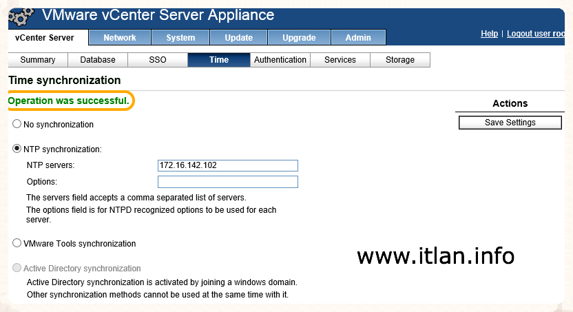 Paso 35: Una vez introducido el Servidor NTP, pulsamos es botón "Save Settings" para guardar los cambios en nuestra BB.DD., si los datos son correctos nos aparecera el mensage "Operation was successful".