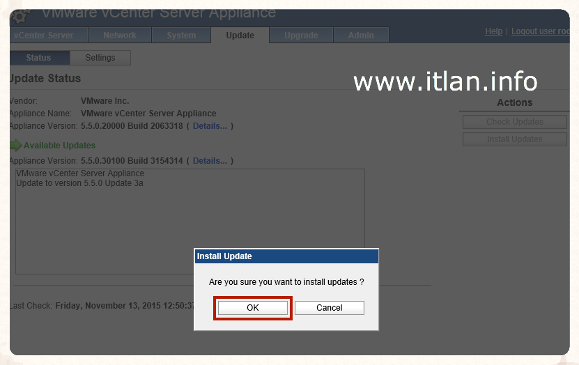 sure you want to install updates?", contestamos pulsando el botón "Ok" si queremos continuar o "Cancel", si queremos Cancelar el proceso.