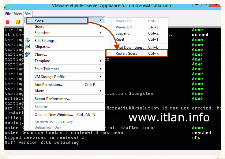 En nuestro caso más adelante, reiniciaremos el VCSA 5.5, en el caso de que olvideis reiniciar los servicios con este
