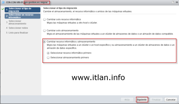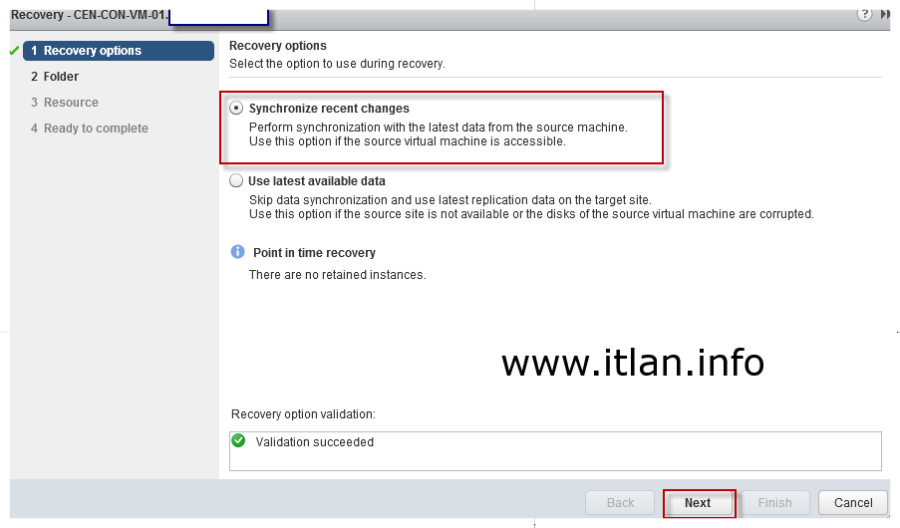 Sincronizar cambios recientes: Esta opción realiza la sincronización con los últimos datos de la máquina de origen. Podemos utilizar esta opción si se puede acceder a la máquina virtual de origen, en nuestro caso utilizaremos esta.