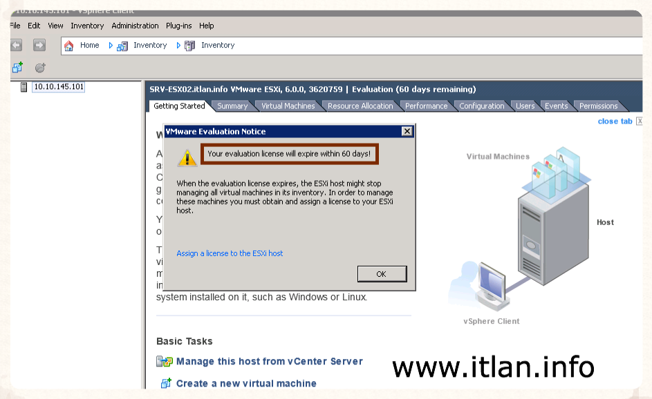 Cuantas veces hemos creado un laboratorio de VMware con la licencia de Evaluación de 60 días y ese periodo gratuito que no nos ofrece VMware se nos quedo corto realizando pruebas, estudiando el sistema, preparandonos para la certificación o simplemente nos cogio por en medio el período de vacaciones cuando teniamos medio laboratorio realizado y al volver nos dabamos cuenta de que la licencia de Evaluación había caducado, y otra vez el proceso tedioso de Instalaciónde nuestros ESXi. Pues con este pequeño truco que os enseño a continuación podréis ampliar otros 60 días vuestra licencia de Evaluación, que bajo mi modesta opinión se queda corta y debiera ser de 120 días estilo Microsoft, bajo mi punto de vista el tiempo necesario de Evaluación de un producto tan complejo y completo de IT.