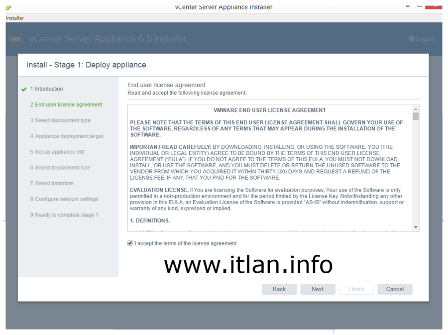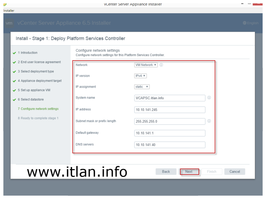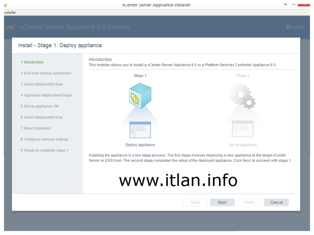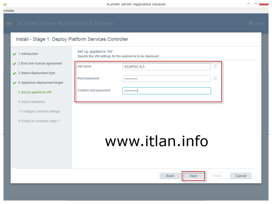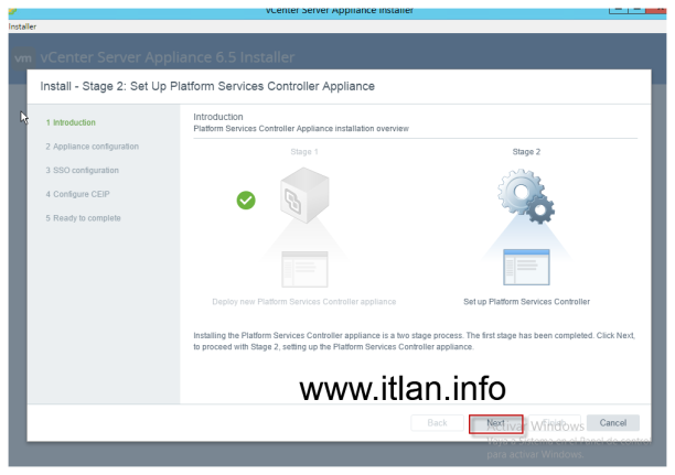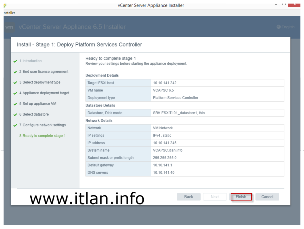 instalación de nuestro primer servidor independiente vCenter Appliance 6.5 asociado a nuestro PSC Externo.